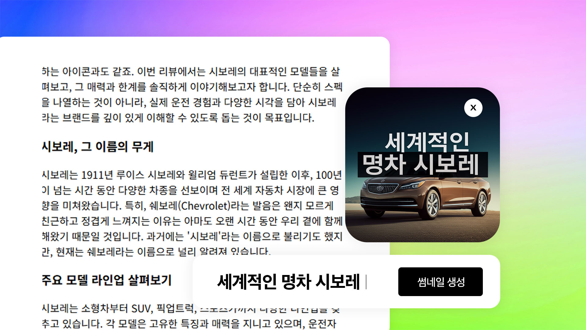 글 주제에 맞는 블로그 썸네일 포스팅을 버튼 한 번으로 제공합니다.