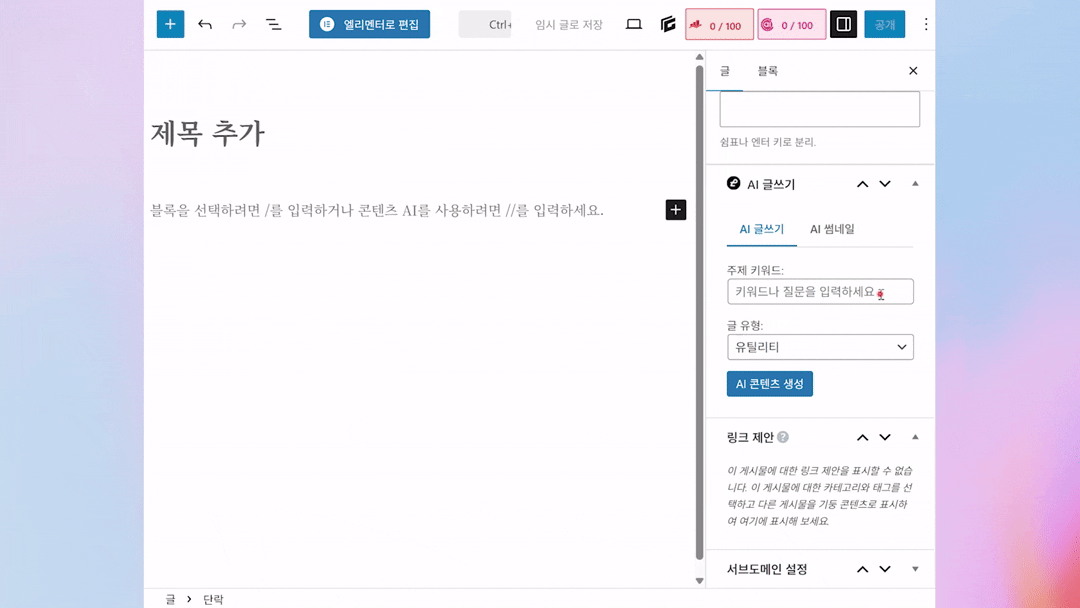 워드프레스 블로그 생태는 AL Pack AI를 사용하고 안하고의 차이로 나뉘고 있습니다.